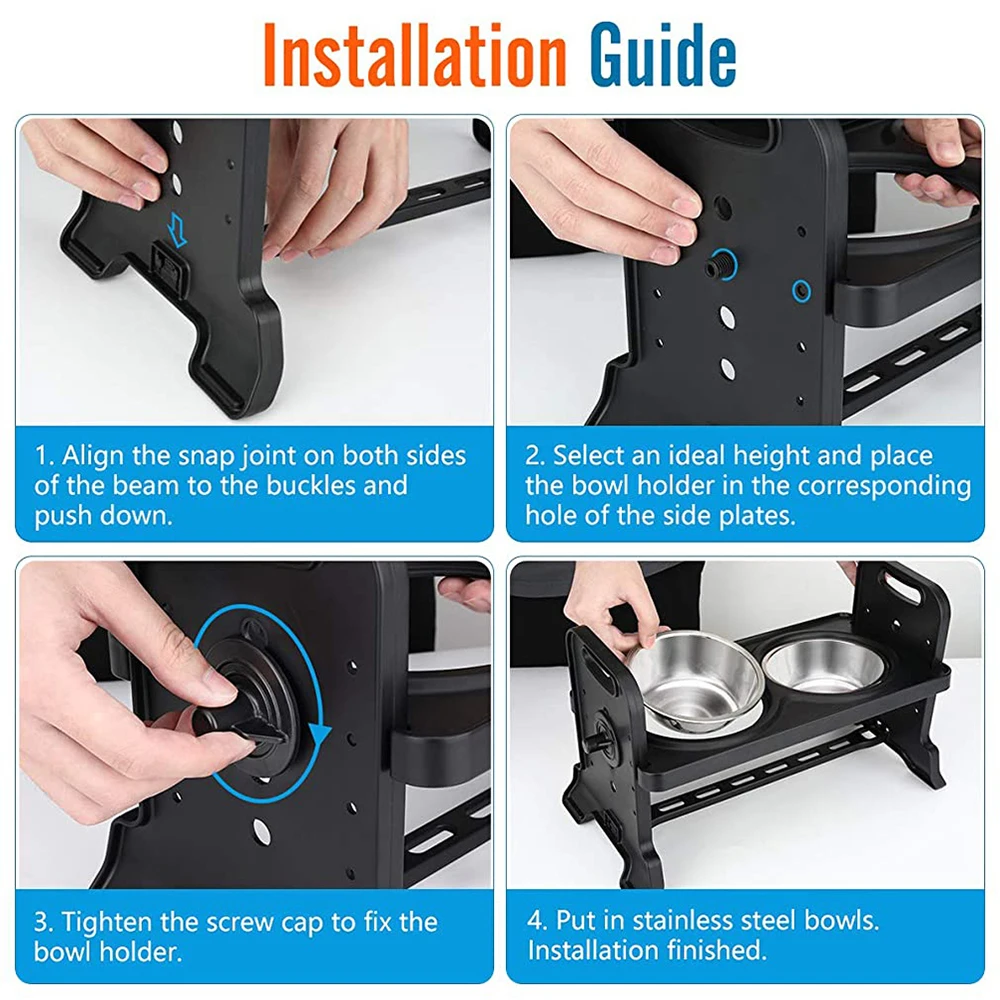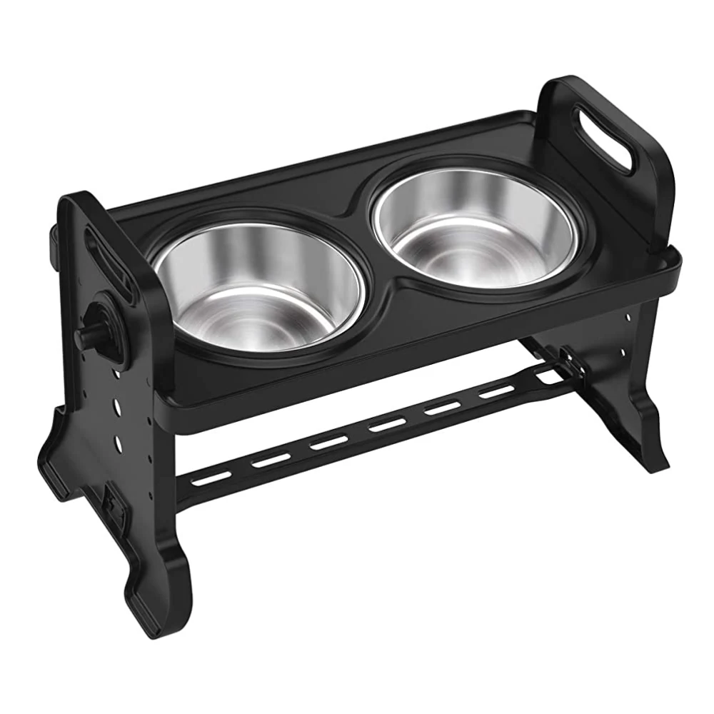The double bowl is made of stainless steel, durable and rust-proof, which can meet the needs of different pets. Our elevated standing and tilting design provides pets with a healthier diet and better digestion.